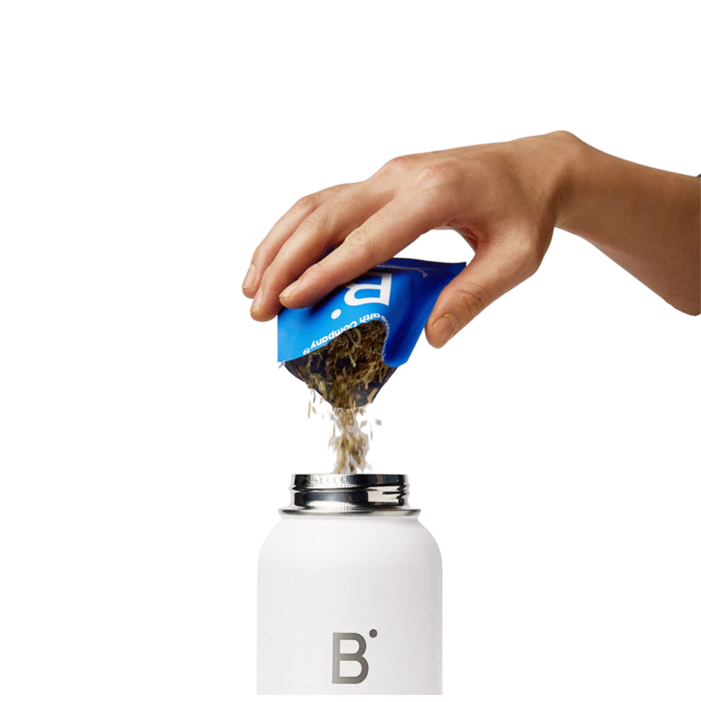 Simply fill the thermos with freshly boiled water, add one BioHealth™ Bag, and let it steep for minimum 1 hour. Once the infusion is ready, pour into a cup and sip. This method ensures full extraction of the functional compounds without the need to re-boil.